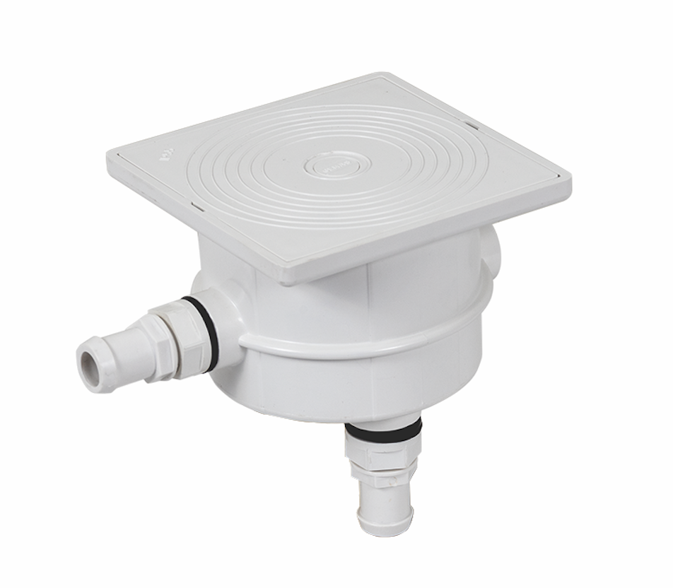 Герметичная распаечная коробка Gemas, выполненная из белого ABS-пластика. Имеет три резьбовых входа. Используется для соединения проводов прожектора и трансформатора.